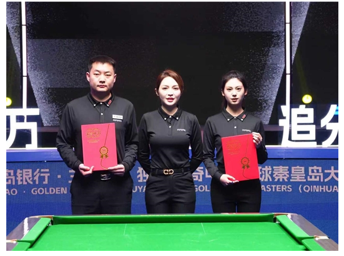 赛场上的公平公正,离不开裁判员的默默坚守与专业执裁。本次赛事中,张一桐、王锦祎两位裁判员以精准的判罚、零争议的表现诠释体育精神,获评优秀裁判员,由独牙传奇中式九球巡回赛裁判长王钟瑶为其颁奖。